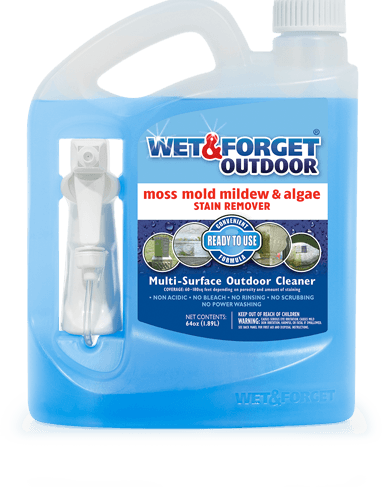 Treating Moss: To get rid of moss, thoroughly saturate the moss making sure the Wet & Forget Outdoor soaks through and comes in contact with the surface the moss has attached itself to. Over the next few days or weeks, you’ll notice the moss turning brown, curling up and detaching from the surface. The wind and rain will help wash away any remaining moss.